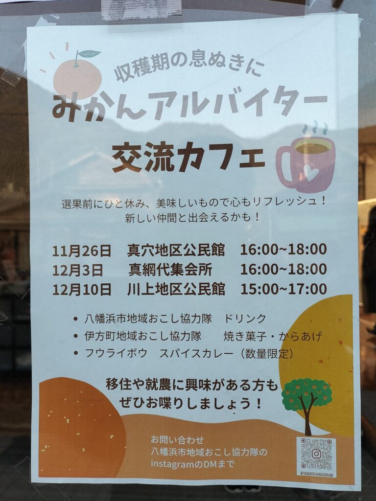 夕方に公民館でアルバイター向けの交流会が開催されていました。当然のように参加はしていないのですが…(すみません)。