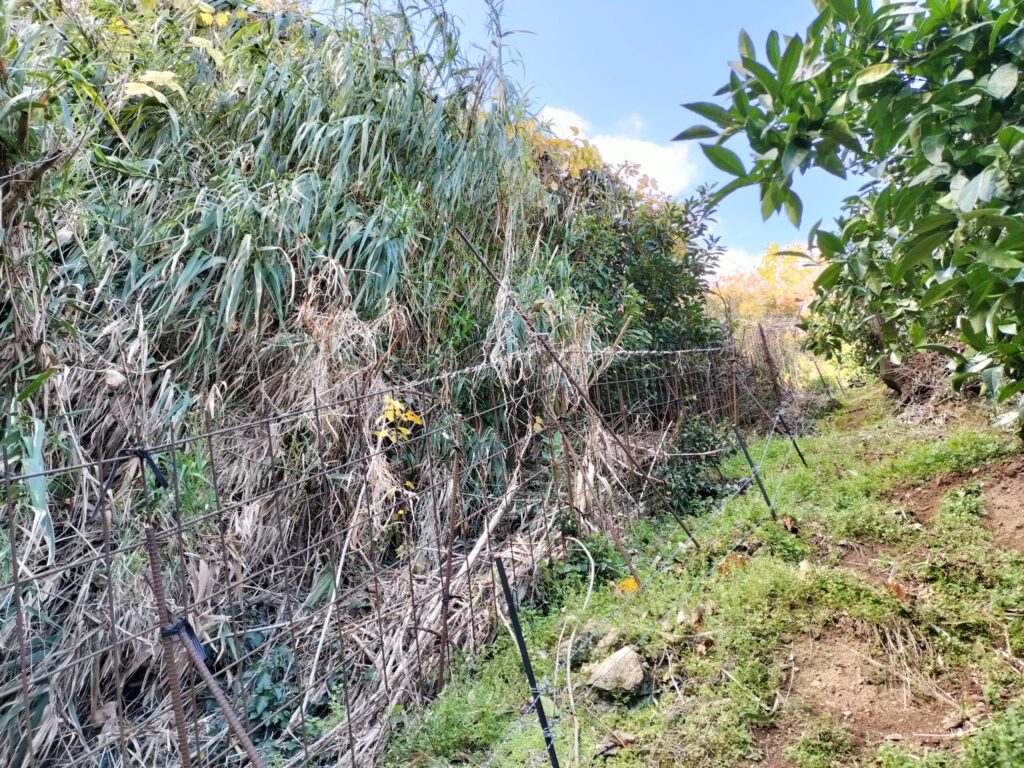 ここは毎年必ずハクビシン被害が出る場所とのこと。畑の周囲にはワイヤーメッシュ柵(イノシシ用)と電気柵が設置されています。
