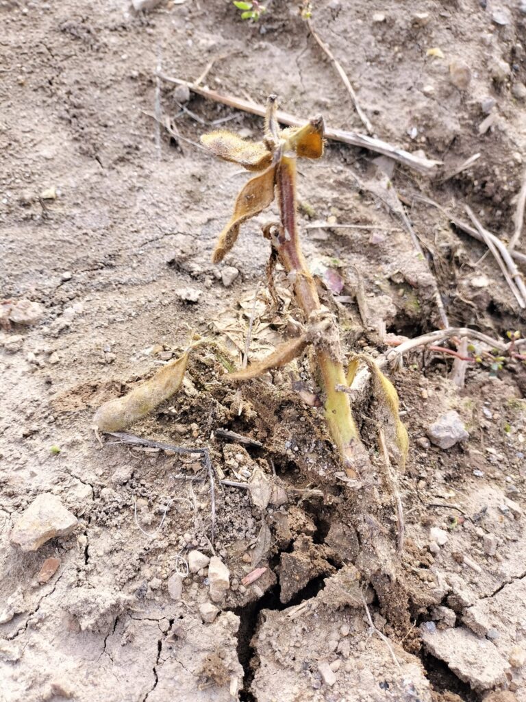 ジャガイモ畑の中に大豆を発見!すぐ隣が大豆畑なので、紛れてしまったようです。
