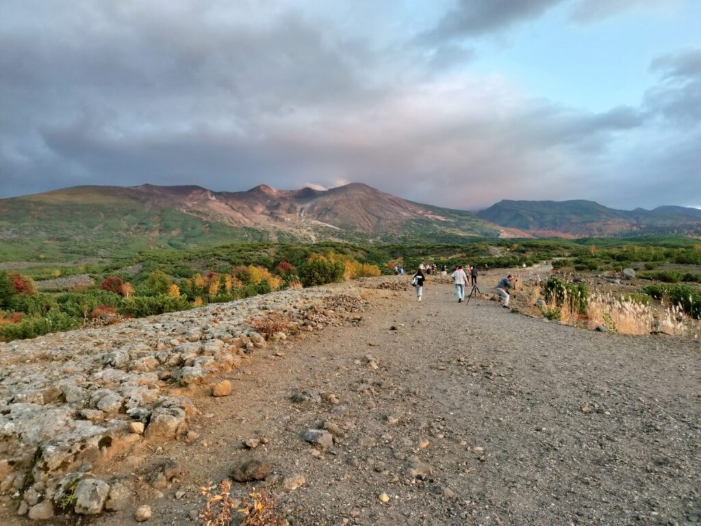 白銀荘を通り越して十勝岳望岳台へ。日没15分前に滑り込みで到着。