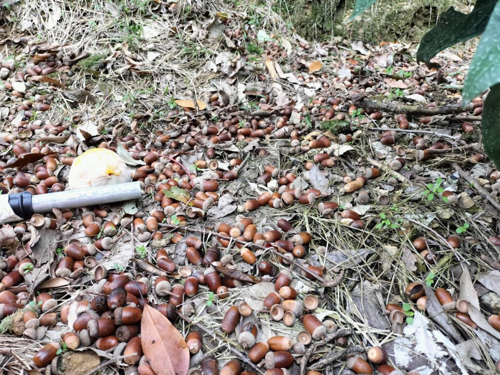 ご覧ください、一面のドングリです。お家の人も珍しがるくらいの豊作。