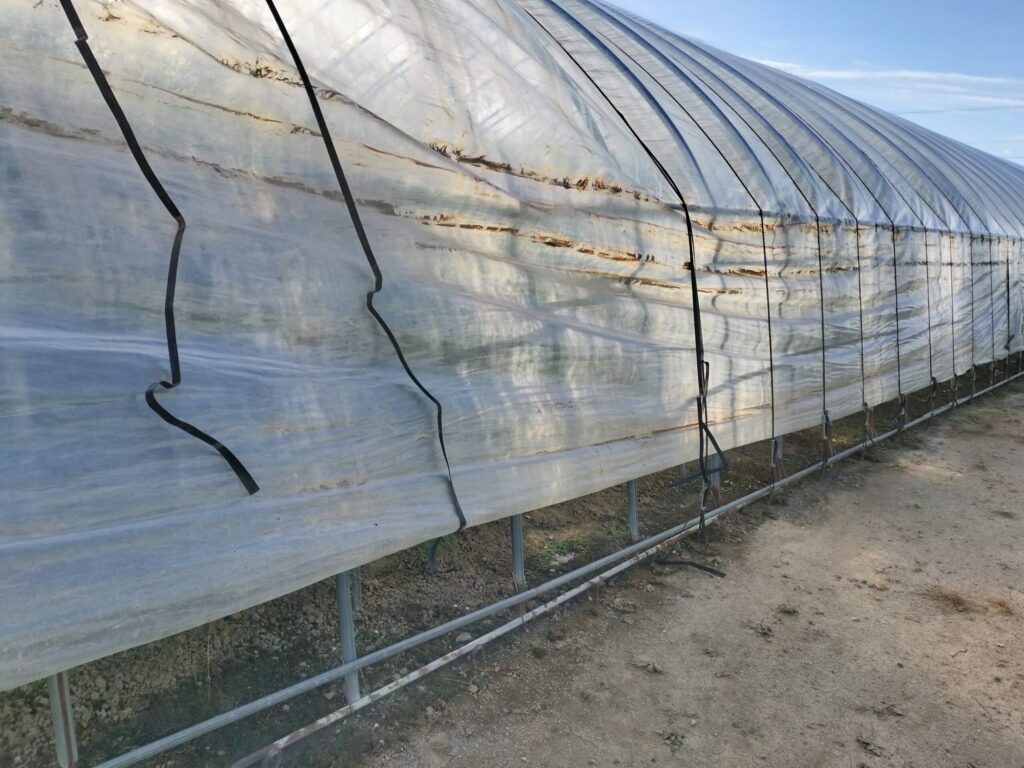 ビニールを下ろす以外には巻き上げ用パイプを紐で縛って吊るすのもやりました(説明下手)。