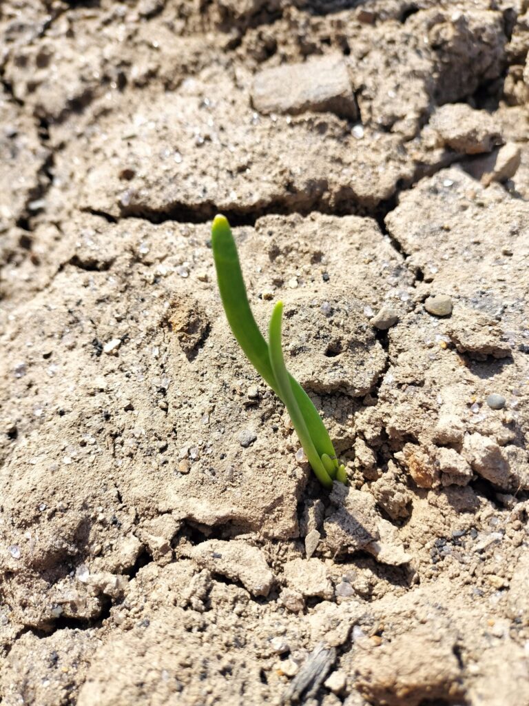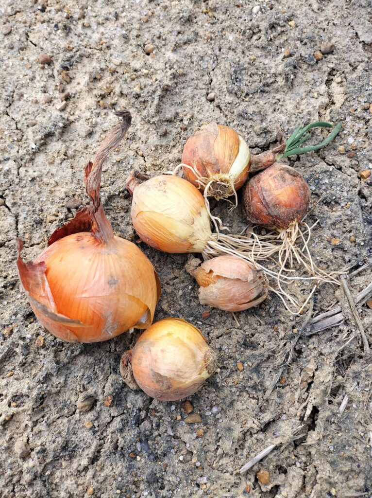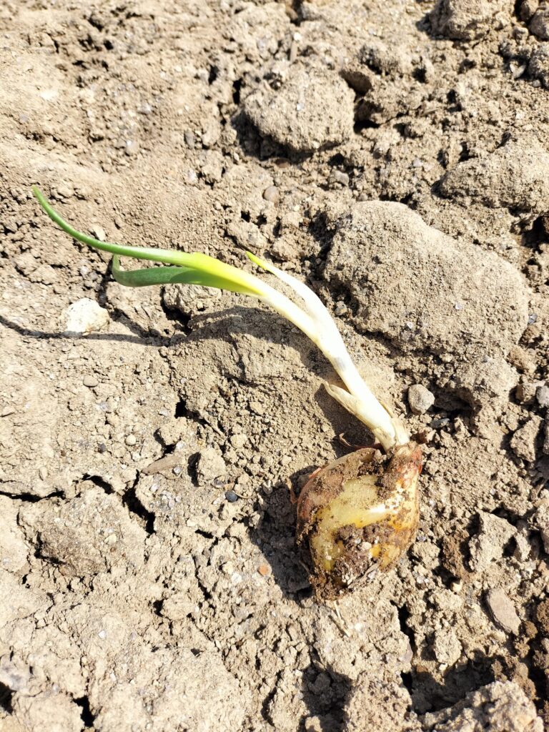 他にも(昨年の私が拾い損ねた)タマネギを回収。腐っていないのもありました!越冬した雪の下タマネギといったところですかね。