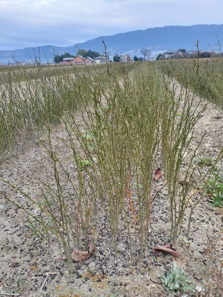 柑橘の台木として使われるカラタチ。この辺では「ゲズ」と呼ばれています。苗木育成はまず台木育成から…ということですね。