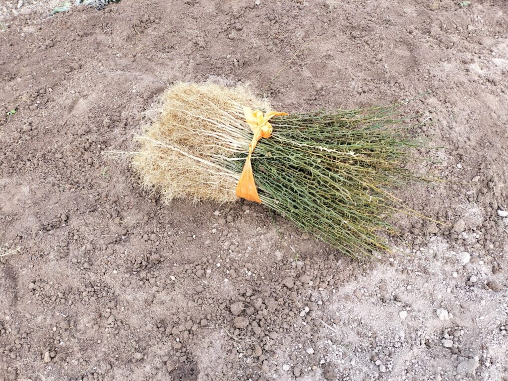 倉庫で根が太いものとそうでないものに分けて、太いのは再び畑へ。根っこ同士、棘同士が絡まり合って選別は意外と大変でした。